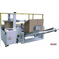 此開箱機(jī)結(jié)構(gòu)設(shè)計(jì):一次完成紙箱吸箱、開箱、成型、折底、封底等包裝工序。適用于多種尺寸的紙箱自動(dòng)開箱封底,如需變換紙箱規(guī)格,手動(dòng)調(diào)節(jié)即可,所需時(shí)間1-2分鐘;本開箱機(jī)可單機(jī)作業(yè),也可與自動(dòng)化包裝流