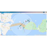 1、船舶向主航道行駛進入1000米范圍內,船整體未在主航道內,觸發報警裝置;實時監控大橋通行船只的動 態位移,保證船舶正常通航的同時保證不與橋墩發生碰撞。